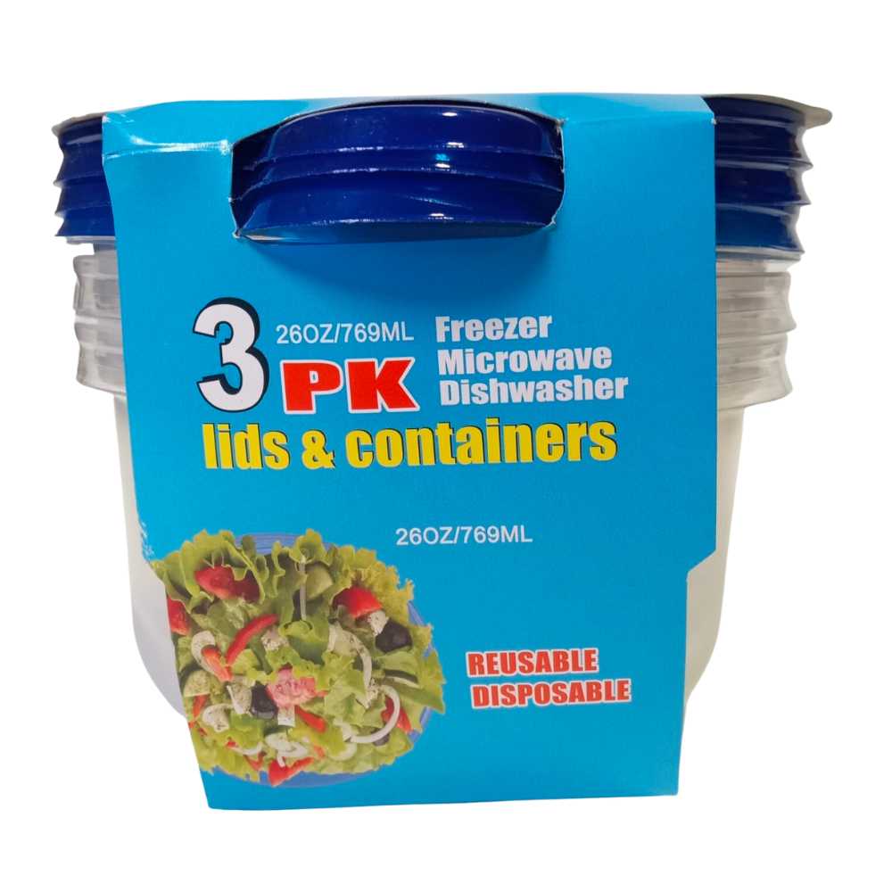 Optimize your food storage with our 26oz Plastic Containers, available in a 3-Pack. These versatile containers are designed to withstand freezer, microwave, and dishwasher use, making them perfect for meal prep, leftovers, or taking lunch on the go. Made from durable, high-quality plastic, they ensure your food stays fresh while providing easy cleanup. Simplify your kitchen storage needs with our 26oz Plastic Containers.